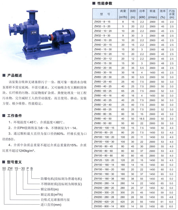 Home / Self-suction pump / ZW self priming sewage pump